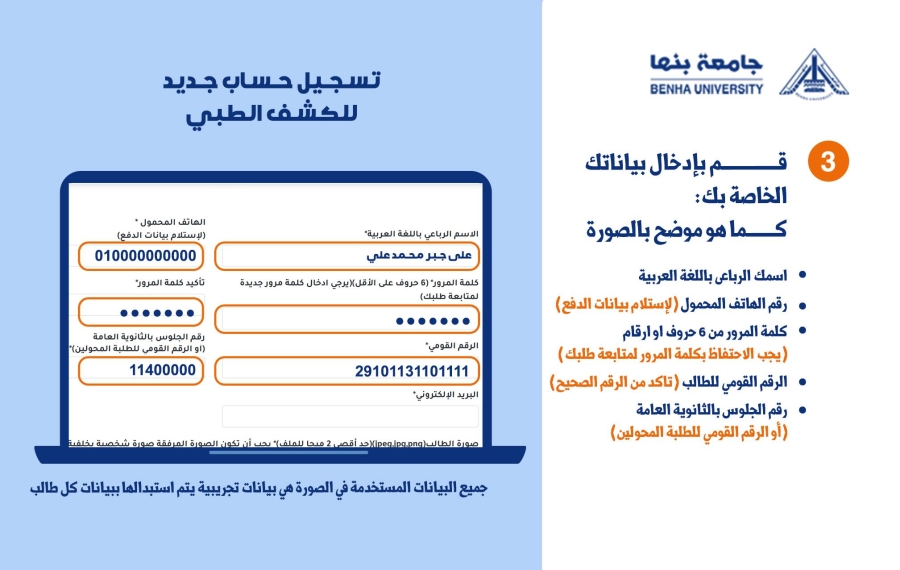 خطوات التسجيل بالكشف الطبي بجامعة بنها