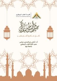 تتقدم الأستاذ الدكتور أماني عبدالرحمن عباس - عميد كلية الطب البيطري بأطيب التهاني للسادة وكلاء الكلية وأعضاء هيئة التدريس والهيئة المعاونة والعاملين والطلاب وجميع منتسبي الكلية بمناسبة حلول عيد الأضحى المبارك، أعاده المولى عز وجل على مصرنا الحبيبة والأمة الإسلامية بالخير واليُمن والبركات. كل عام وأنتم بخير